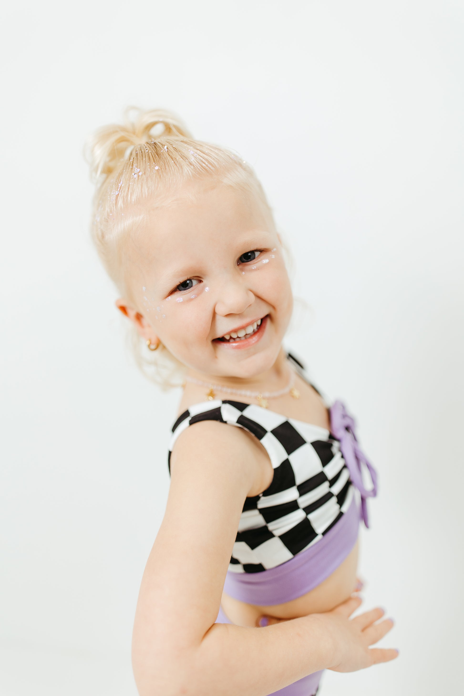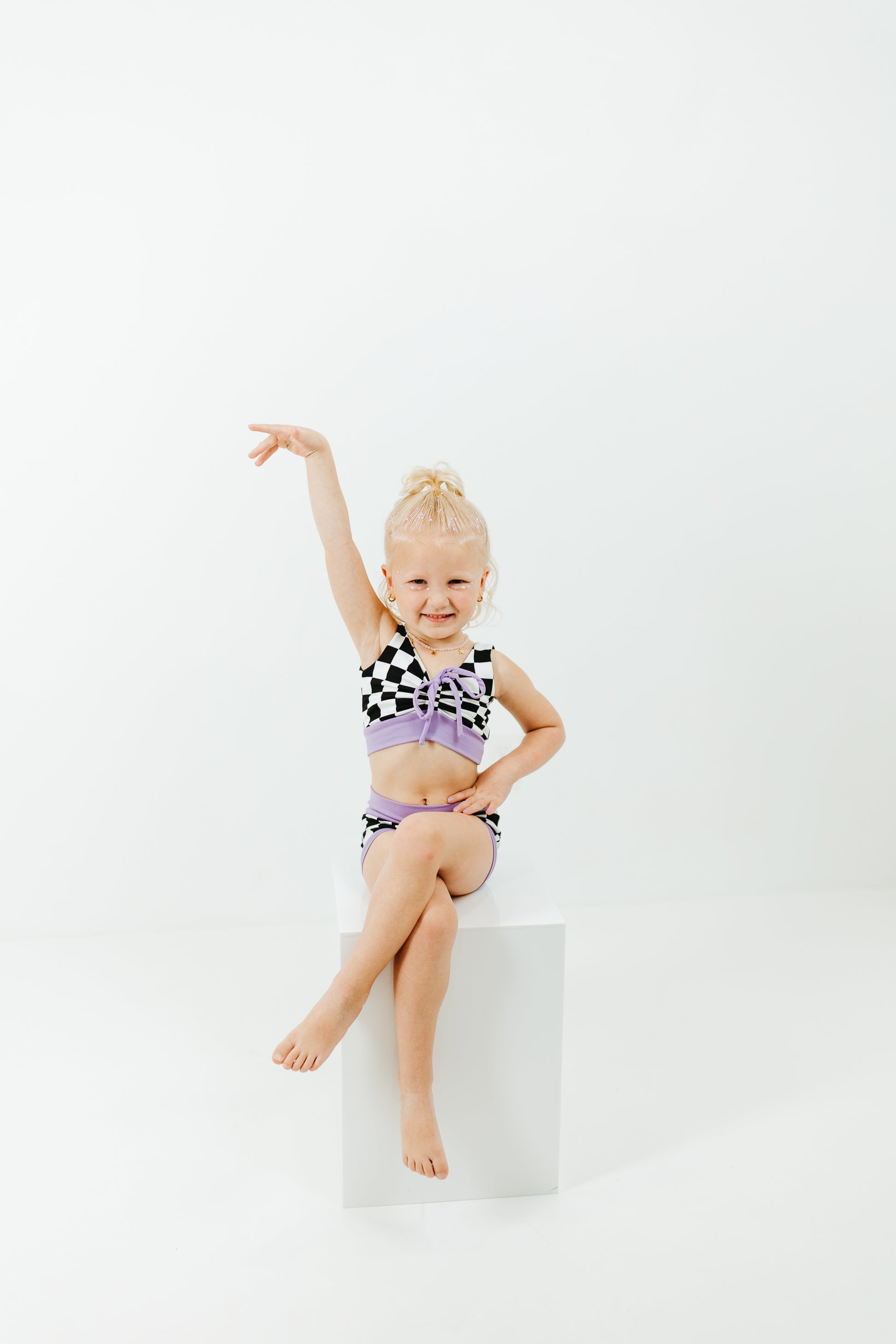 Featuring a ruched front crop top with an adjustable tie and matching high-wasited bummy bottoms, the Willa B Cinch Front Set is perfect for dance, gymnastics, and tumbling! The cinched front allows you to customize the length of the top for your preferred fit and coverage. The top is fully lined for confident movement, while the thick waistband and leg bands on the bottoms ensure full booty coverage. Bottoms are fully lined as well. Wear as a matching set or mix and match for endless outfit combos!